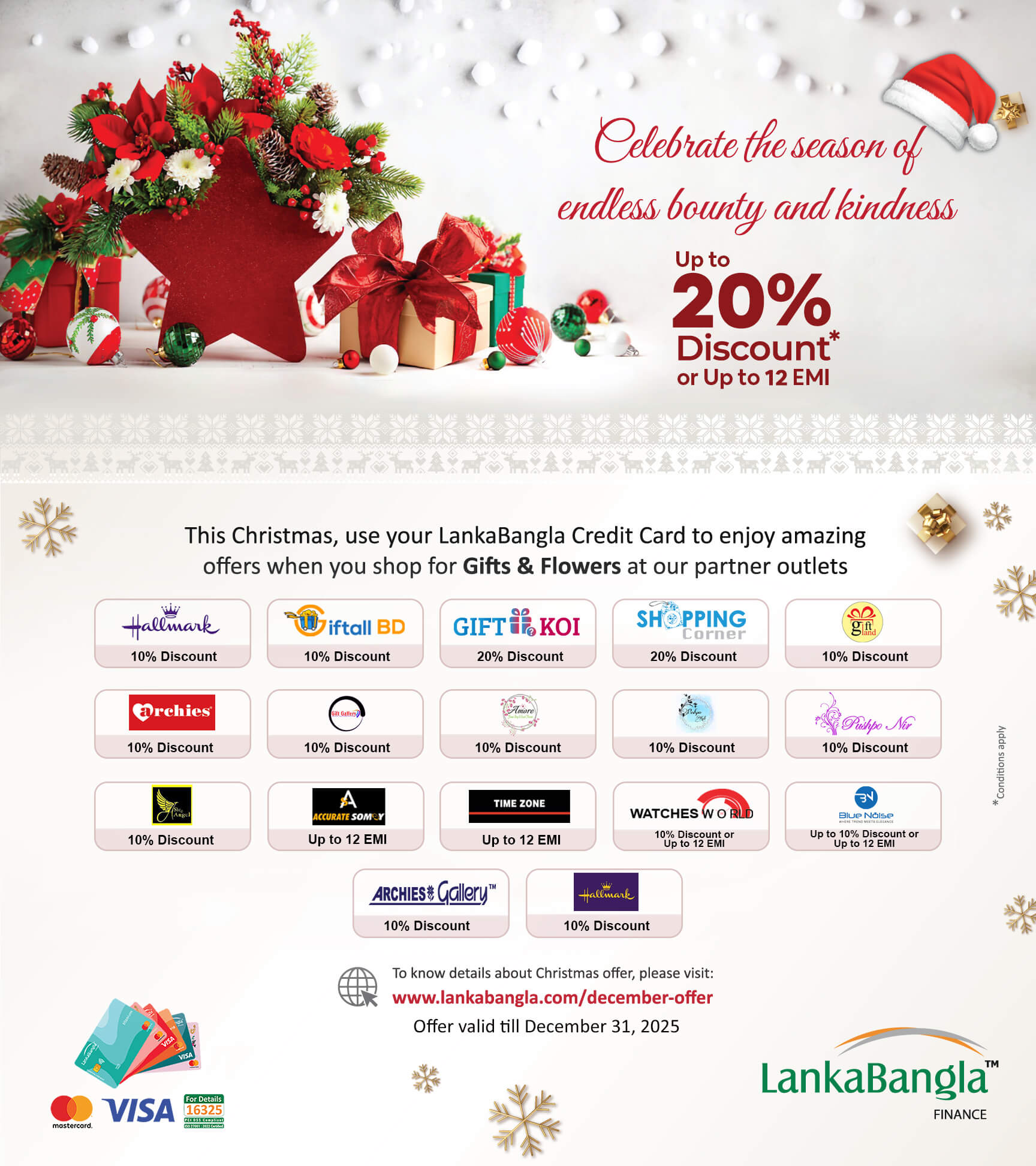 | 6 | Khazana Sarees | Jabbar Tower, Shop-10-13, 1st floor, Gulshan-1, Dhaka | 20% discount on all items |