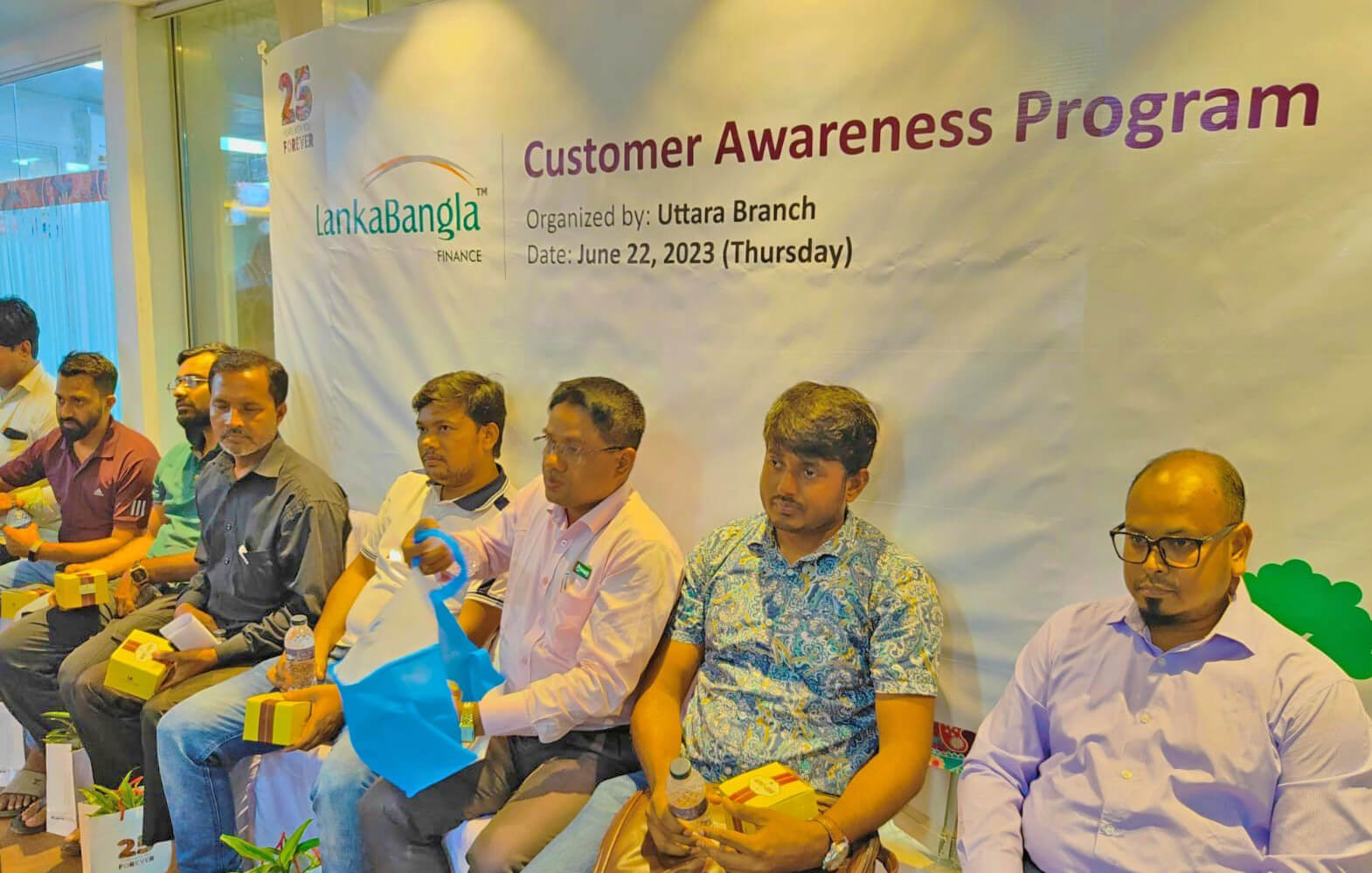 A seminar was organized at Uttara branch of LankaBangla Finance Limited on 22nd June, 2023 as part of Customer Awareness Program. In this seminar, in the presence of a significant number of respected customers of LankaBangla Finance, local dignitaries and other senior officials; Mohammed Kamrul Hasan, FCA, the Chief Risk Officer of the Company, discussed in detail about the Customers and Financiers Rights, Green Banking and Integrity issues.