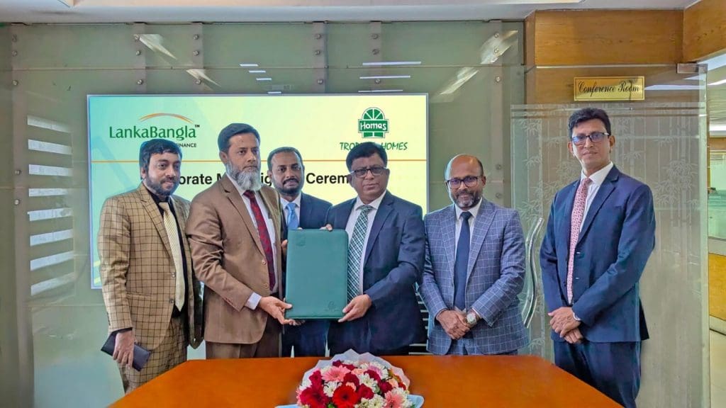 LankaBangla Finance PLC. (LBF) and Tropical Homes Limited have entered into a Memorandum of Understanding (MoU) to address the evolving needs of the real estate market. This strategic partnership aims to provide housing solutions for customers across all income groups, including those seeking luxury residences as well as middle- and lower-income housing options. Under this agreement, LankaBangla Finance will offer interested buyers of Tropical Homes for facilities of home and mortgage loans with flexible terms and competitive interest rates.